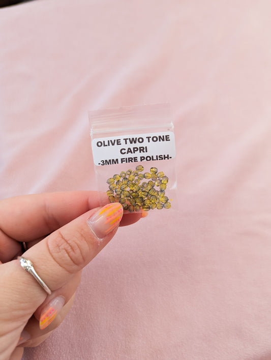Olive Capri Two Tone - 3mm - Pack of 60 - Fire Polish Faceted Crystals