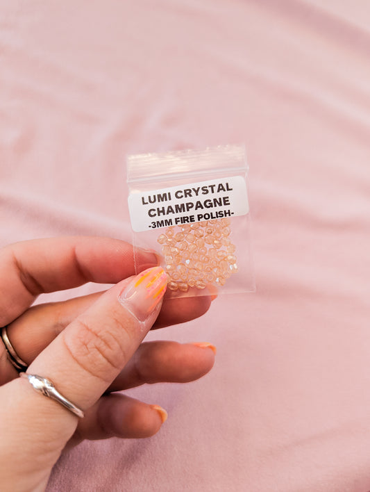 Lumi Crystal Champagne - 3mm - Pack of 60 - Fire Polish Faceted Crystals