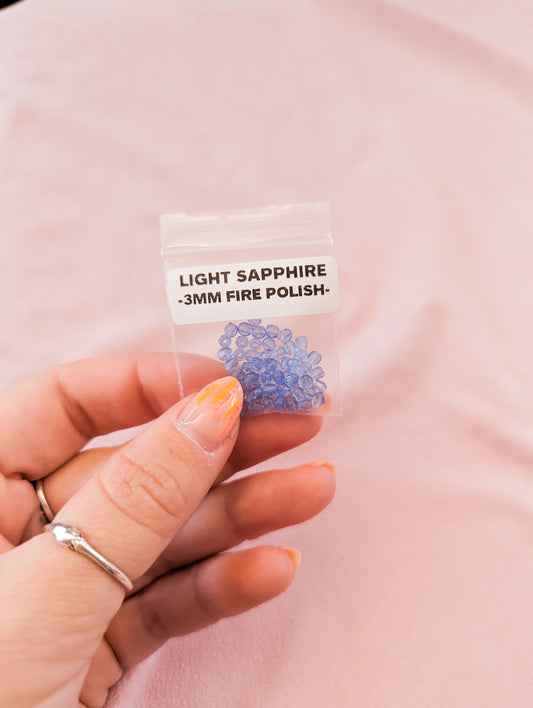 Light Sapphire - 3mm - Pack of 60 - Fire Polish Faceted Crystals