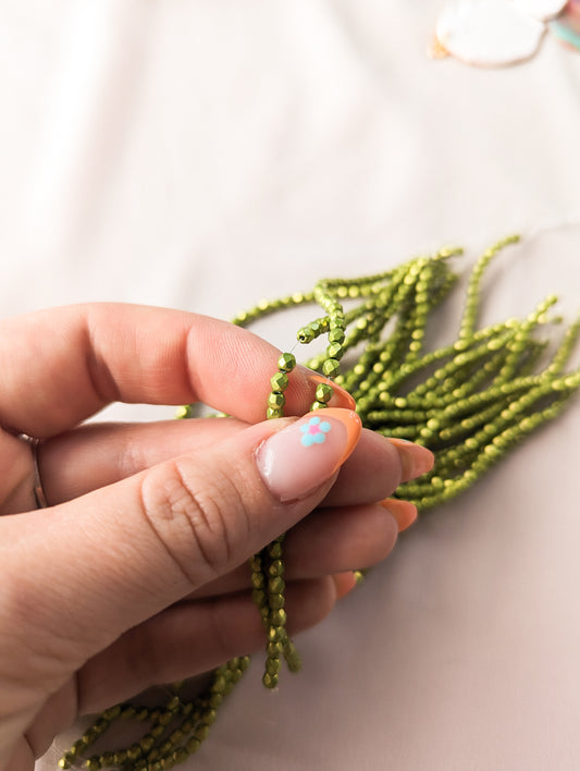 Olivine - 4mm - 7 inch Strand - Fire Polish Faceted Crystals