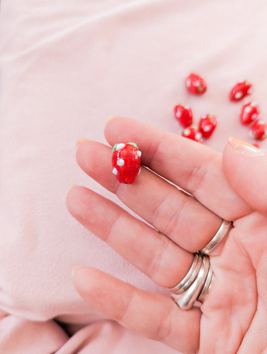 Red Strawb - Lampwork Glass - Pack of 10