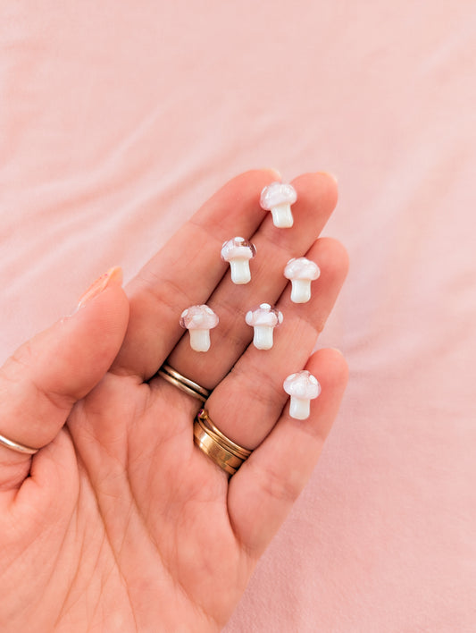 Mini Pink Mushies - Lampwork Glass - Pack of 6