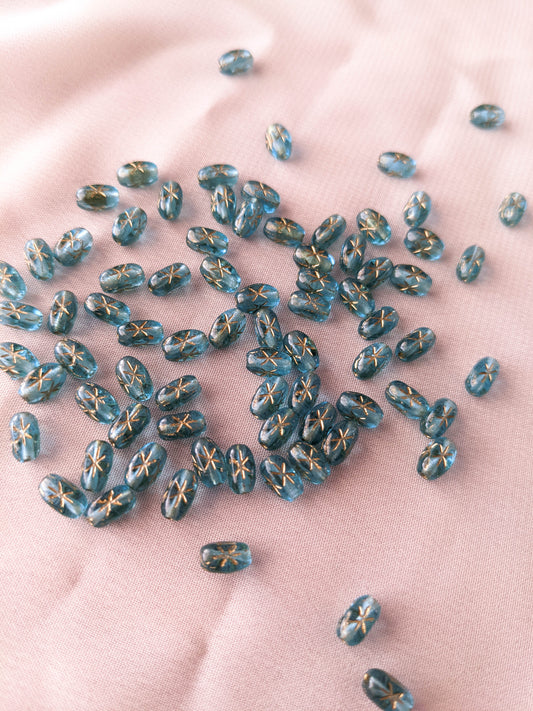Twinkle Beads - Aqua Blue - Gold Ink - 6x4mm