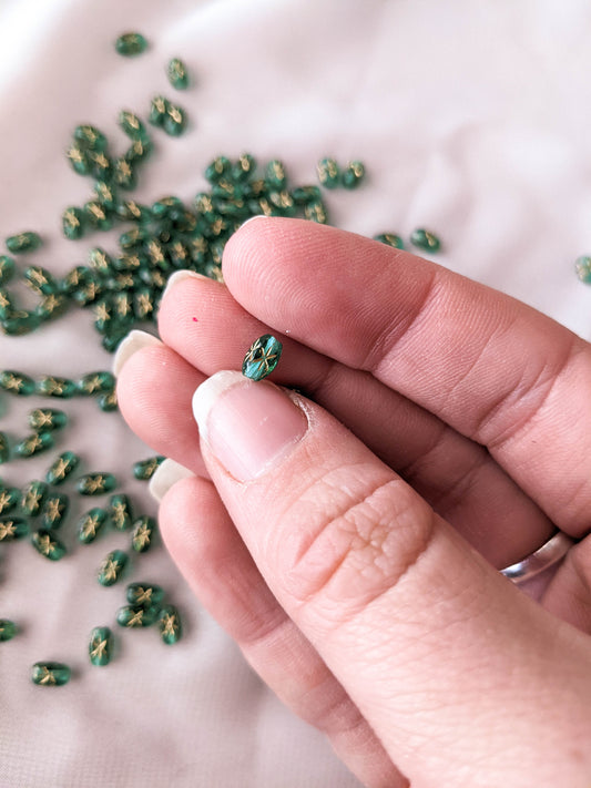 Twinkle Beads - Teal Green - Gold Ink - 6x4mm